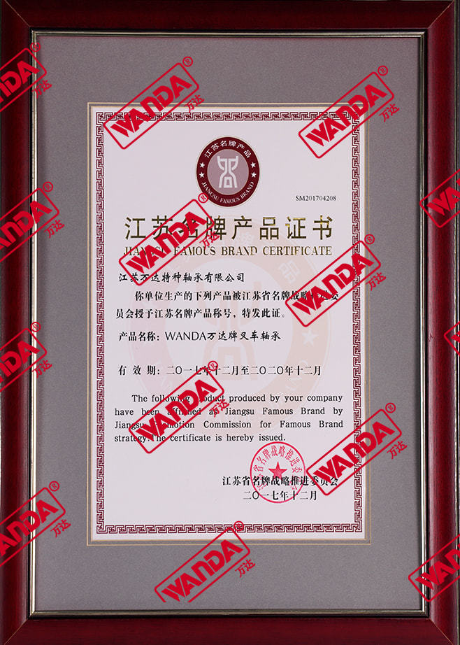 شهادة منتج العلامة التجارية الشهيرة جيانغسو