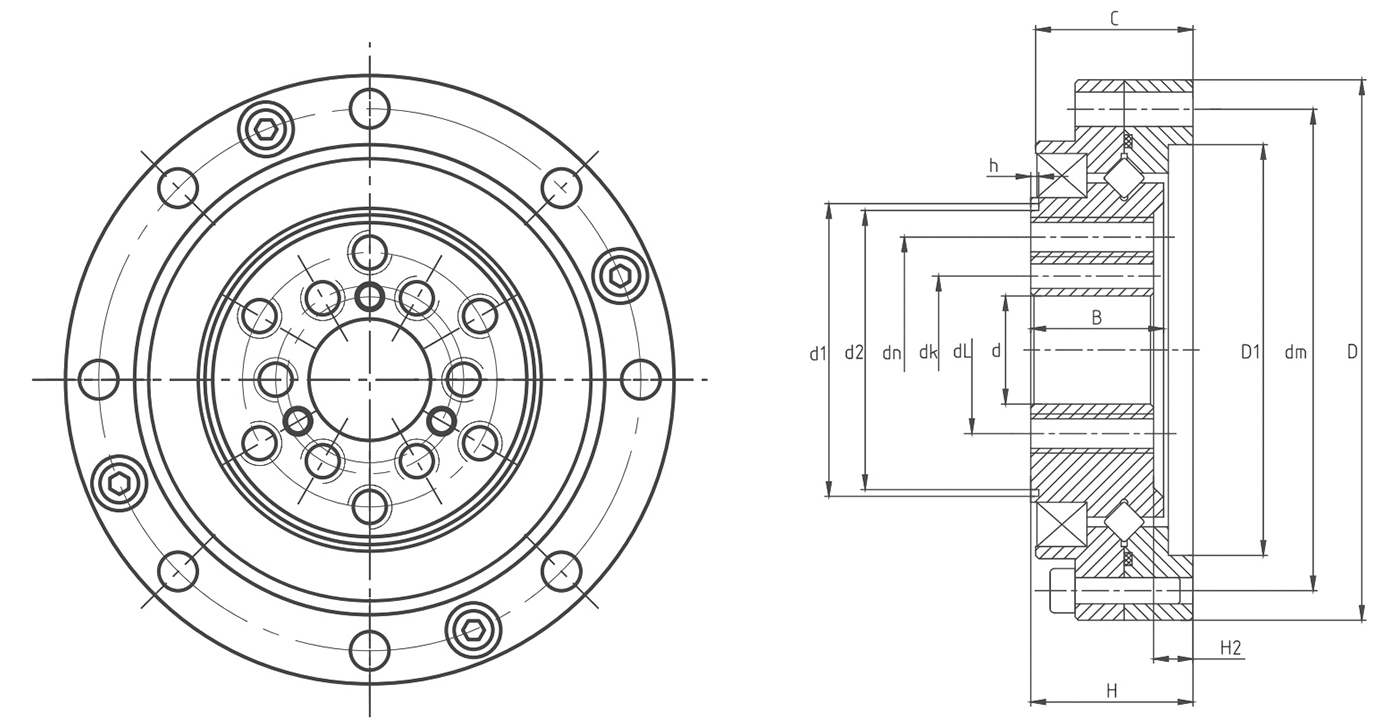 يمكن تصنيف المحامل الأسطوانية المتقاطعة للمخفضات التوافقية إلى نوعين هيكليين رئيسيين وفقًا لتطبيقها: حلقة خارجية مقسمة مع حلقة داخلية مدمجة، وكل من الحلقات الخارجية والداخلية مدمجة. العناصر المتداول عبارة عن بكرات أسطوانية مرتبة بشكل متعامد مع بعضها البعض بزاوية 90 درجة داخل المجاري المائية على شكل حرف V. يمكّن هذا التصميم المحمل من تحمل الأحمال في جميع الاتجاهات في وقت واحد، بما في ذلك الأحمال المحورية والأحمال الشعاعية ولحظات الانقلاب. يتميز المحمل بالدقة العالية، والصلابة العالية، والاحتكاك المنخفض، وقدرة الحمل المجمعة.